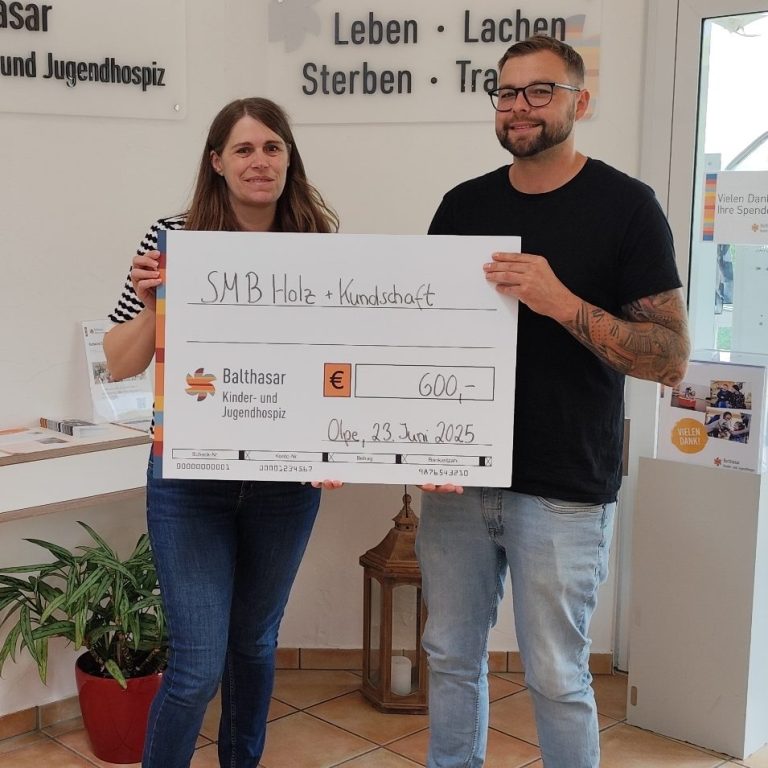 In diesem Jahr führen wir erneut eine Sammelaktion zugunsten des Kinder- und Jugendhospizes in Olpe durch. Während der Sammelaktion 2025 konnten wir mit der Unterstützung unserer Kunden ein bemerkenswertes Ergebnis von 1.200 Euro erzielen. Auf Wunsch werden Ende Dezember, im Rahmen der Übergabe, Spendenquittungen durch das Kinder- und Jugendhospiz ausgestellt und per Post versendet.